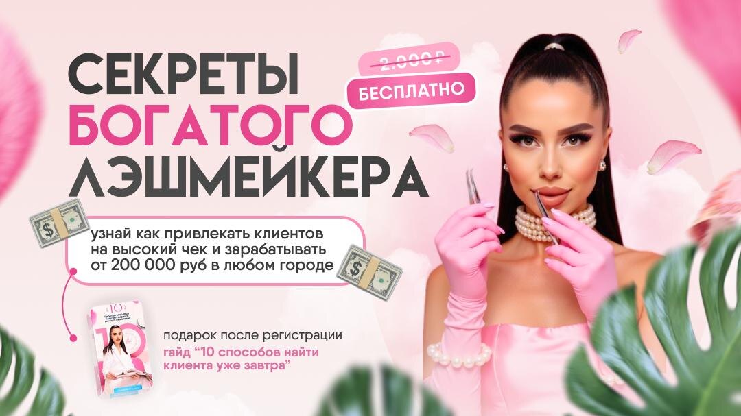 Лэшмейкер, ты уже готова к этому разговору, давай по-честному… С нынешними ценами на жизнь ты всерьёз думаешь, что можно жить в кайф, если наращиваешь ресницы за 1500-2500 рублей? 🙃 ❗️Запомни, 200 000 руб/мес на ресницах НЕ РАВНО много работать ❌ Низкий чек = — 4–8 эконом клиентов в день — больная спина, глаза в кучу — аллергия на клей — вечно экономишь на себе — НИКАКОЙ личной жизни — полное выгорание — не можешь позволить себе отдых, одежду, крутую квартиру, рестораны Ты реально хочешь провести молодость на кушетке — а не на свидании или с семьей? 📢 Настало время выбрать себя — и научиться работать меньше, а зарабатывать больше На бесплатном эфире «СЕКРЕТЫ БОГАТОГО ЛЭШМЕЙКЕРА» я покажу как тебе выйти в высшую лигу с заработком от 200 000 руб 😍 Что ты узнаешь: 💎 Как начать брать больше денег и не бояться, что “все уйдут” 💎 Что должен уметь мастер, чтобы вам платили в разы больше чем сейчас 💎 Какой сервис привлекает богатых клиентов 💎 Как выглядеть и вести себя на уровне