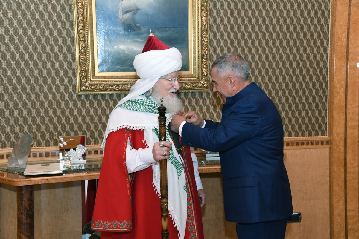 ☪️🎖Рустам Минниханов вручил муфтию Талгату Таджуддину медаль ордена «За заслуги перед Республикой Татарстан