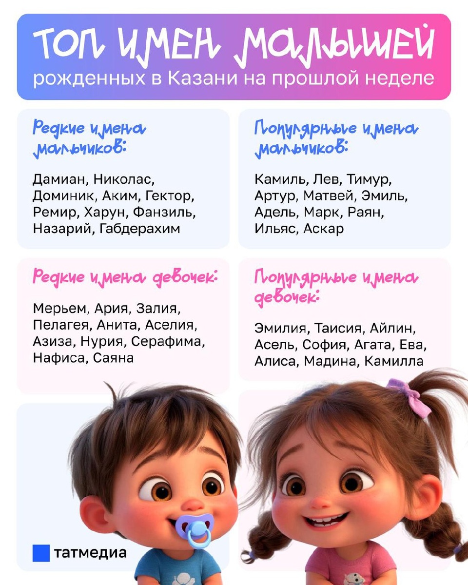 πΆβοΈΠΠ°Π·Π²Π°Π½Ρ ΡΠ°ΠΌΡΠ΅ ΡΠ΅Π΄ΠΊΠΈΠ΅ ΠΈ ΠΏΠΎΠΏΡΠ»ΡΡΠ½ΡΠ΅ ΠΈΠΌΠ΅Π½Π° Π½ΠΎΠ²ΠΎΡΠΎΠΆΠ΄Π΅Π½Π½ΡΡ ΠΊΠ°Π·Π°Π½ΡΠ΅Π²