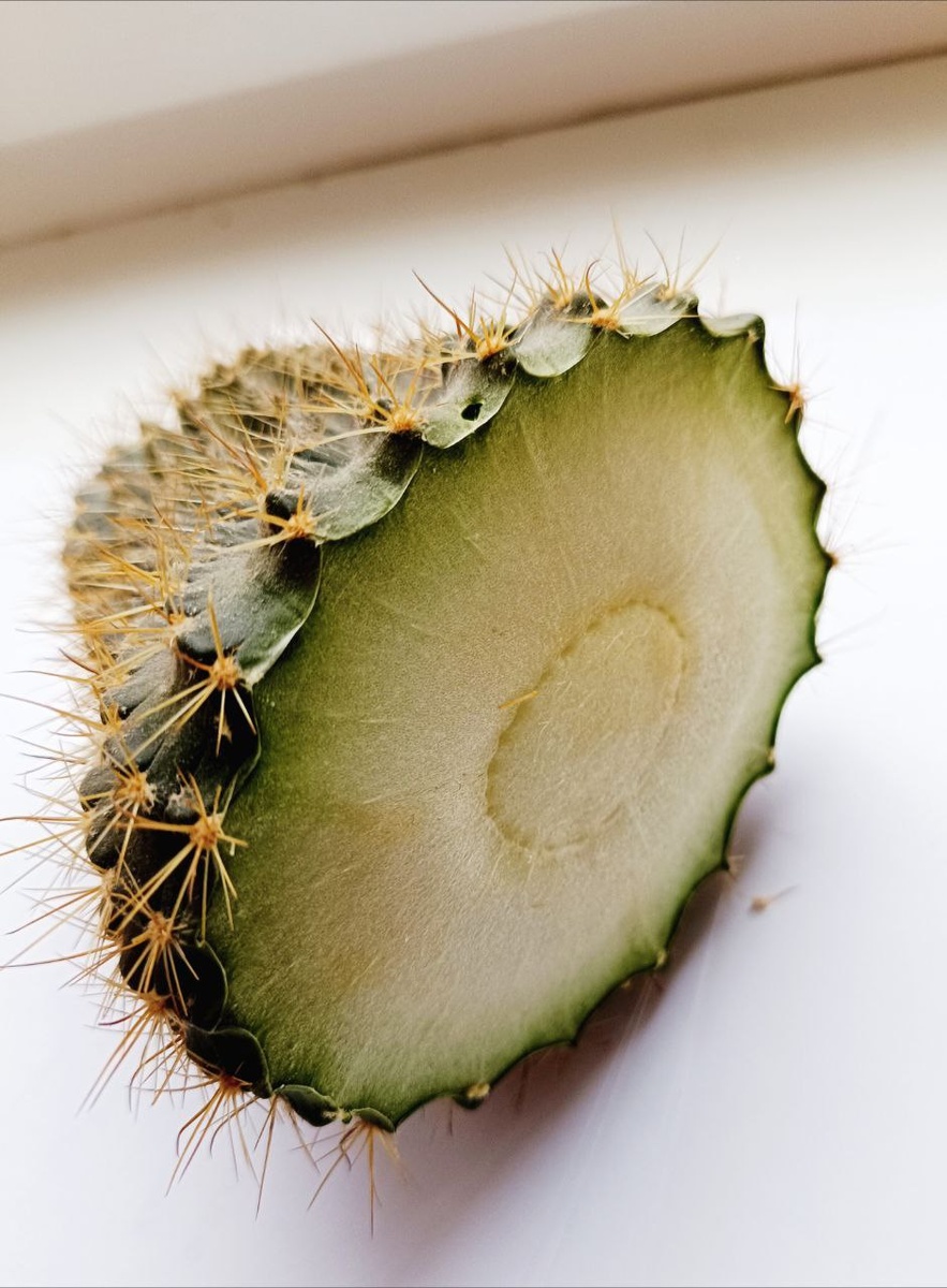 А вы пробовали кактус? Теперь у меня на работе лежит на сушке вот такая часть некогда большого кактуса. Приняли решение его попробовать обновить, так как он был весь кривой и косой. Да и падал на бок. Как-то давно я таким образом обновляла кактус. И он даже нормально потом рос. Главное хорошо просушить срез, потом по краям пойдут корешки. А пока я обрезала кактус, моя коллега умудрилась даже его попробовать на вкус😄 Сказала, что безвкусный. Больше никто из нас не решился на такое. Остановились только на запахе. Кому-то кактус на срезе пах фруктами, кому-то травой. Ну а теперь ждем пока все хорошо просохнет. Будем надеяться, что у нас успешно завершится это обновление.