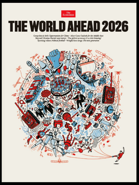 Всем доброго времени суток кто смотрит этот канал. 13 ноября 2026 вышла очередной номер журнала The #Economist "Мир перед 2026". Будем разбираться что нарисовано на обложке этого журнала. Нужно отметить сразу что все идет с севера на юг, об этом указывает движение кораблей, контейнеравоза и парусного судна тиреры. В центре расположет #пирог с цифрой 250, но что отмечается в этом году я не знаю, наверное, 250лет со дня провзглашения независимости США. От пирога тянется цепь с наручником к руке с кулаком и No Pasaran, за рукой флаг #США возле руки ядерные ракеты, возможно что нужно сдерживать США от их применения даже на испытаниях. Недалеко космическая ракета которая взлетает в космос. #Контейнеровоз оборудован системой безорасности и будет отстреливаться, если на него будет совершено нападение в Красном море или на подходе к нему. Парусное судно наоборот идет не вооруженное, и его экипаж везет кому-то кубок или греческую вазу. Дальше следует отметить #ИИ(искуственный интеллект) и его