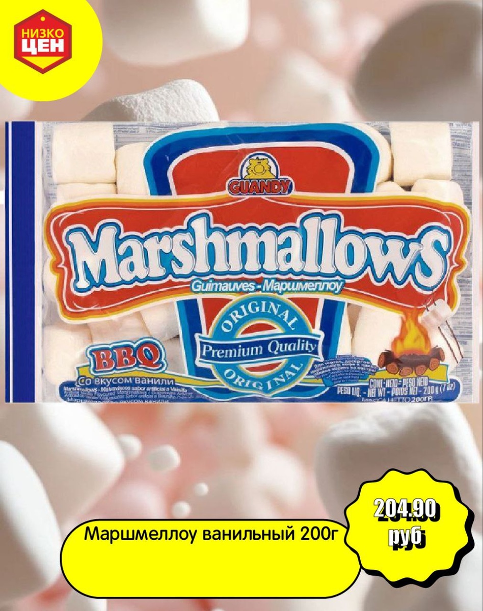 А что вы знаете о Гватемале? То, что это страна многочисленных водопадов и действующих вулканов? Родина шоколада и сердце древней цивилизации Майа? «Мекка» кофеманов и рай для виндсёрферов? Не только. Не будь Гватемалы, мир бы лишился маршмеллоу. Оказывается, гватемальская компания GUANDY представлена на шести континентах и кормит этим лакомством всё человечество, включая полярников и пингвинов в Антарктиде.😄 Мы, как вы знаете, для своих покупателей выбираем всё только самое лучшее . И поэтому привезли вам самый настоящий маршмеллоу.