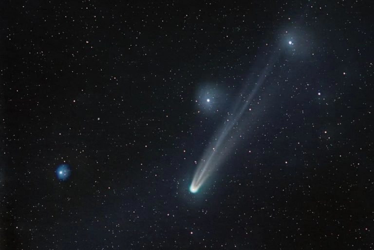 Комету C/2025 R2(SWAN) поймал в объектив фотограф из Владимирской области Владимир Родин. Это его пятая комета. Также в активе астронома — звёзды, метеоры, туманности, полярное сияние, лунное затмение и ещё множество уникальных явлений и небесных тел. Владимир на своей странице в ВК поделился историей фото: «По дороге дождь, облака. Приехали в село — полетели с севера просветы между туч. Температура стала снижаться, с поля пошёл густой туман. Потом ещё чуть похолодало, и туман просто рухнул на землю росой. Затем мороз перевёл эту росу в твёрдое состояние. Небо ясное. Ликую! Успел! Всего одним кадром, пристрелочным, но достал, видна зелёная головушка. Через несколько секунд она скрылась в остатках облаков, а потом остатки исчезли, но хвостатая была уже слишком низко, спряталась за деревьями. Интересный эффект от авроры — звёзды пухнут и появляются ореолы вокруг них. Не стал бороться: какие были условия, такое и фото. Прибавляет индивидуальности». Ранее GK уже публиковал фото другого аст