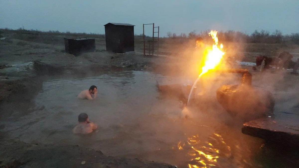 Можно спросить у местных жителей, они сразу подскажут где он находится. Заезжать к нему можно прямо на машине. Вода горячая. Местные даже зажигают ее у трубы и тогда начинает течь огненный поток воды.