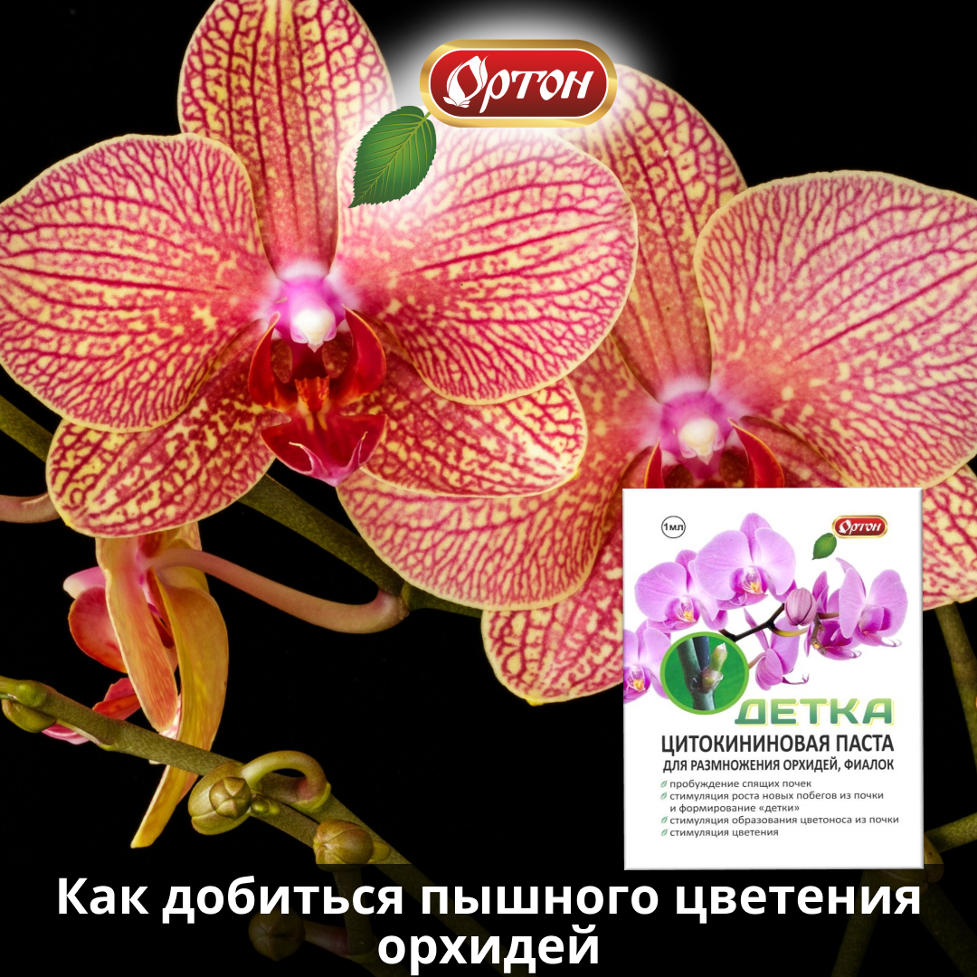 Цветущие орхидеи способны преобразить любой интерьер. Но что делать, если они не хотят цвести? Для цветения орхидеям необходима смена сезонов. Чтобы стимулировать образование цветоносов, можно создать для цветов условия, отличные от привычных. На 2-3 месяца: ✅ Сократите частоту поливов ✅ Откажитесь от опрыскиваний ✅ Прекратите внесение удобрений А для более быстрого и гарантированного результата опытные цветоводы используют цитокининовую пасту «Детка» от компании «Ортон». Используя природные механизмы регуляции этот препарат эффективно пробуждает спящие почки и стимулирует образование новых побегов у фиалок и орхидей. В основе «Детки» натуральные компоненты, делающие средство безопасным для людей, животных и растений. Паста содержит аналог природного фитогормона цитокинина 6-бензиламинопурин и обогащена витамином В1, для активного развития цветоносов. Первые результаты от обработки появляются уже через 14-20 дней, когда почки растений пробуждаются и начинают развиваться. Затем, в течен
