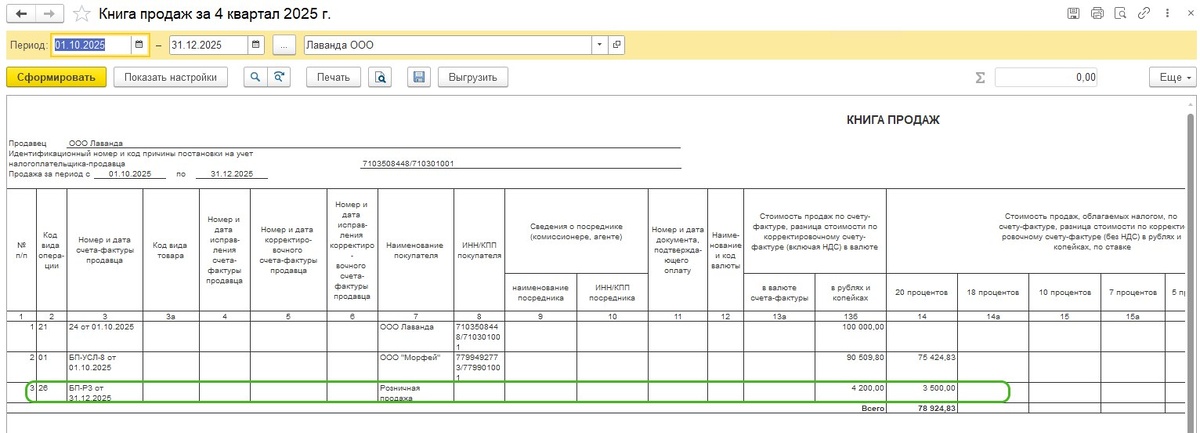 📊 Как сформировать книгу продаж при розничных продажах в БП 3.0