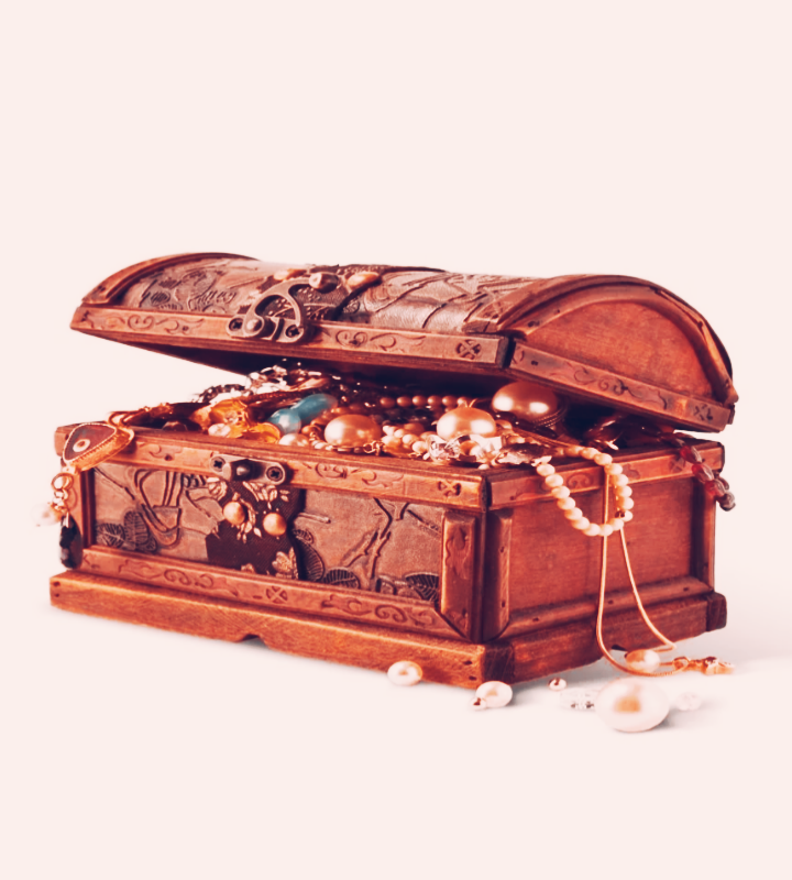 А шкатулка была хороша! Словно пиратский сундук, обнаруженный на необитаемом острове, она была полна сокровищ. Среди прочих безделушек попадались редкие экземпляры: старинные кольца с полудрагоценными и драгоценными камнями, серебряные броши с замысловатыми узорами, тонкие цепочки, которые некогда украшали шею бабушки.