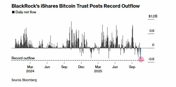 Рекордные оттоки из Bitcoin ETF BlackRock 📉💰 Из спотового Bitcoin ETF от BlackRock (IBIT) фиксируются рекордные оттоки — инвесторы вывели около 1,26 млрд долларов в ноябре 2025 года. Это крупнейший месячный отток с момента запуска фонда. Цена IBIT упала на 16% до уровня апреля 2025 года. Причинами стали макроэкономическая неопределенность и ожидания политики ФРС США. Интересно, что Гарвардский университет наоборот увеличил свои вложения в IBIT на 257%. Аналитики считают это временной коррекцией и "очисткой рынка" перед возможным ростом. #новости #БезПафосаФинансы #IBIT #BlackRock