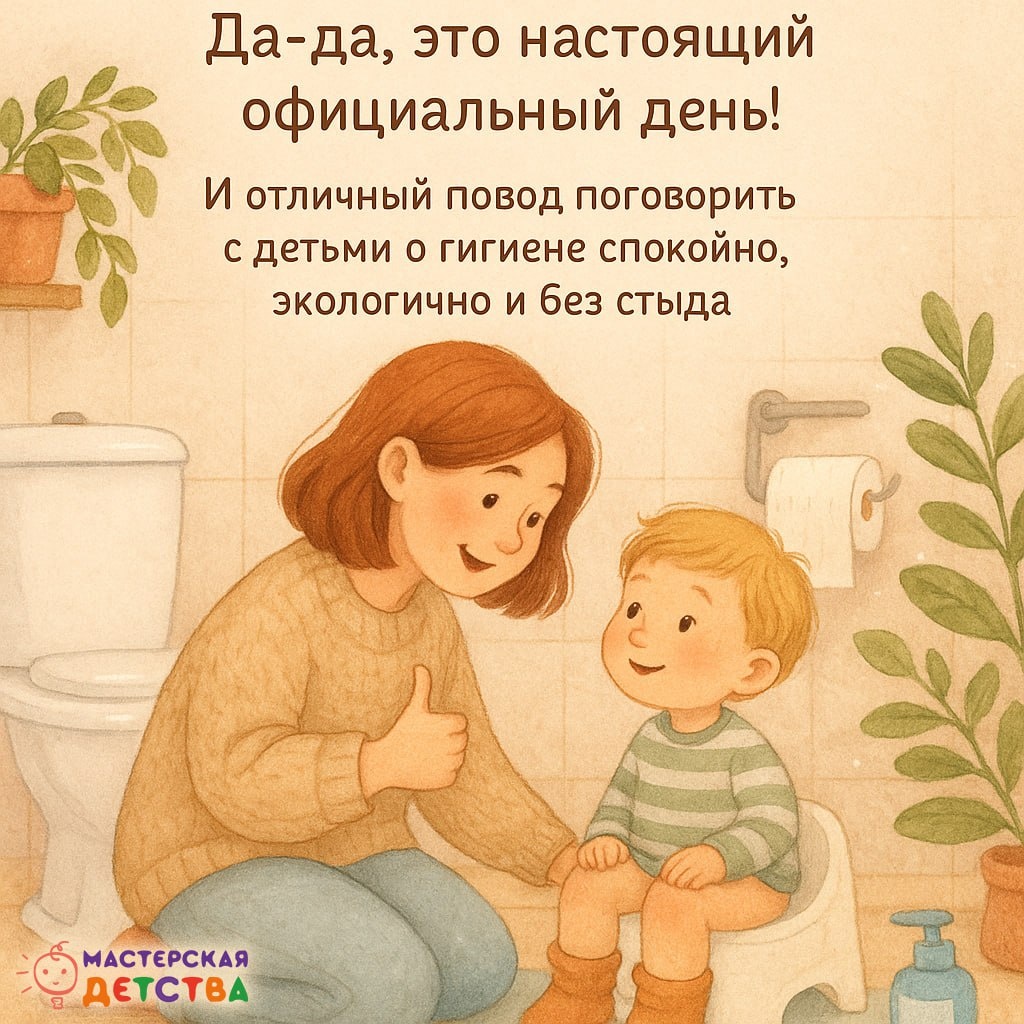🚽 19 ноября — Всемирный день туалета Тема естественных процессов часто вызывает у взрослых неловкость, а у детей смех. Но именно от того, как мы об этом говорим, зависит отношение ребёнка к собственному телу, здоровью и границам. 💛 Почему важно говорить об этом открыто – ребёнок учится понимать своё тело и его сигналы – формируются здоровые привычки с детства – исчезает стыд, который мешает ребенку просить помощь или сообщить о дискомфорте – формируется чувство безопасности и телесной грамотности 🌿 Как говорить с ребёнком мягко и экологично 1️⃣ Спокойная нейтральная лексика Используйте простые слова: «туалет», «помыть руки» и т.д. Без шуток и без драм - это обычные процессы. 2️⃣ Объясняйте логику, а не стыд Не «фу, грязно», а: «Мы моем руки, чтобы микробы не попали в организм». Ребёнок быстрее принимает правило, когда понимает смысл. 3️⃣ Превратите в ритуал Мытьё рук перед едой, после улицы, после туалета естественная как часть дня. 4️⃣ Забота, а не стыд Не высмеивайте «пром