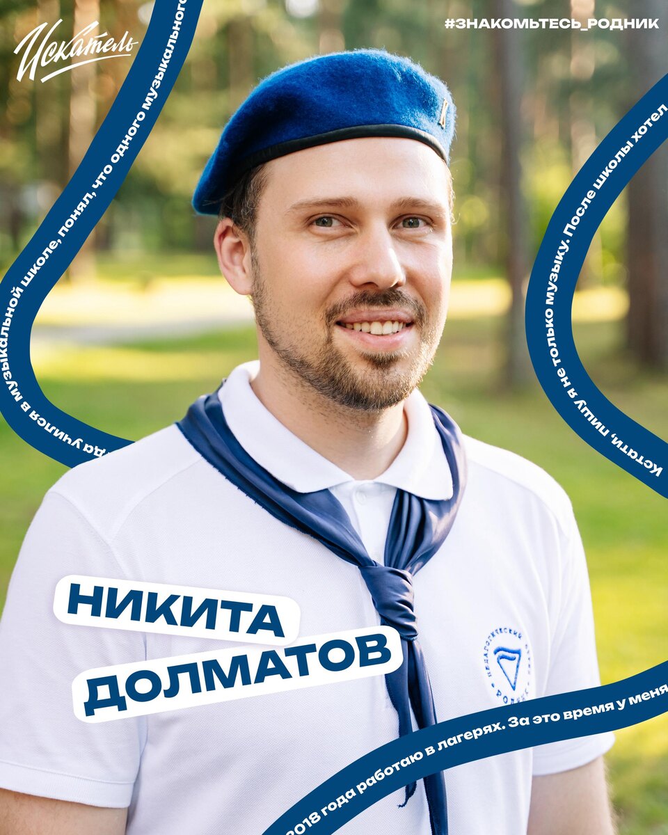⭕️ Я с 2018 года работаю в лагерях. За это время у меня набралось много смен. Смена в «Искателе» этим летом стала двадцать девятой по счёту. ⭕️Когда учился в музыкальной школе, понял, что одного музыкального инструмента мне мало. В итоге теперь играю на всём подряд (ударные, клавишные, духовые и гитары). Сейчас в качестве хобби занимаюсь звукозаписью и написанием собственной музыки. ⭕️ Я сам родом из Брянской области. Какими-то волшебными путями судьба привела меня во Владимирскую область. Удивительно, что номер Брянского региона — 32, а Владимирского — 33. Вот и думай теперь: простая случайность или судьба? ⭕️ Кстати, пишу я не только музыку. После школы хотел поступить на режиссёра, но не сложилось. Творческое нутро не давало покоя, поэтому в университете я серьёзно занялся КВНом. Начал писать шутки, стендапы и сценарии. Теперь к этому списку можно добавить и вечерние дела. ⭕️ Лагерь в моей жизни не заканчивается после лета, так как в Москве я работаю в компании «МОСГОРТУР». Мы з