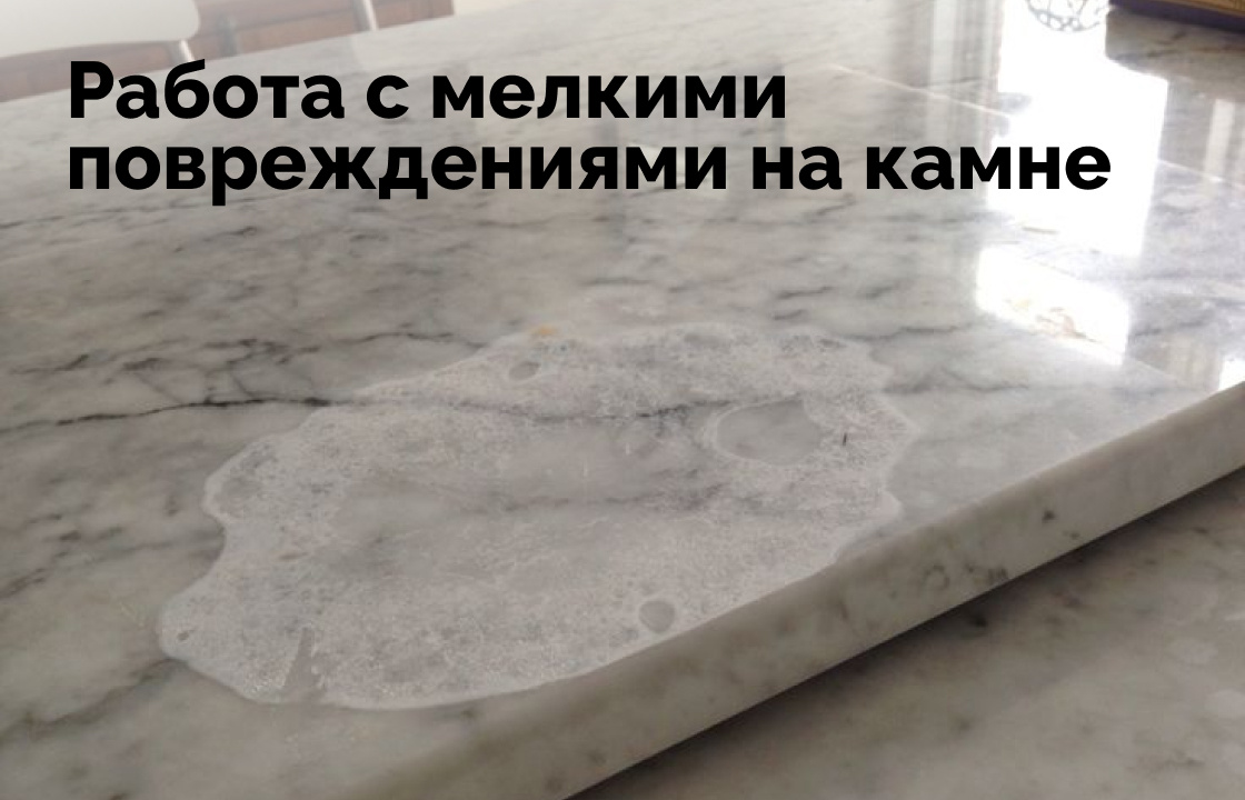Чтобы удалить такие мелкие повреждения с полированного природного камня собственными силами можно использовать следующие методы и средства: