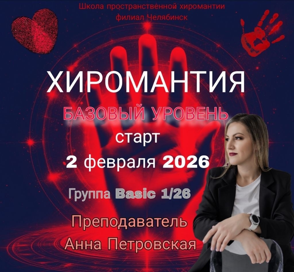 ❤️❤️❤️2 февраля 2026 в Филиале г.Челябинск Школы Пространственной Хиромантии Ю.Г. Ганжа стартует курс BASIC группа 1/26, базовый уровень. Сейчас вы можете забронировать обучение по самой низкой стоимости.