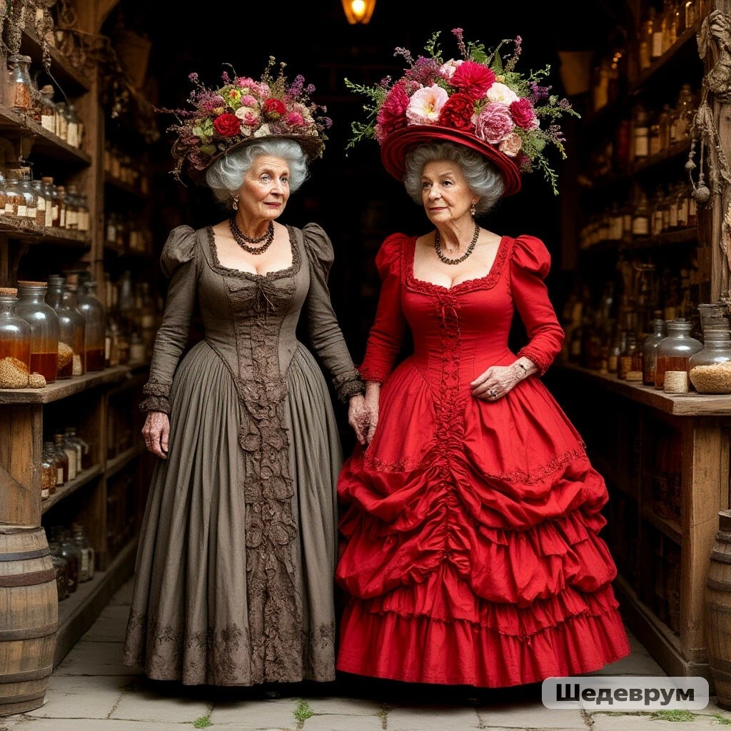 Вторая же имела гораздо меньше роста и больше веса, но платье на ней было даже пышнее и ярко-красное. На голове – странная шляпка с целым букетом цветов – такие носили дебютантки, когда мне было шестнадцать.