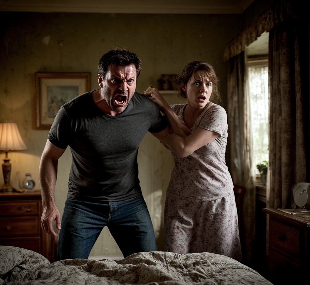 — схватил жену за плечи… — Он рванулся вперёд, его грубые пальцы впились в ее плечи, сжимая ткань ее домашней кофты. Хватка была железной, причиняя острую, жгучую боль, которая пронзила ее до костей.