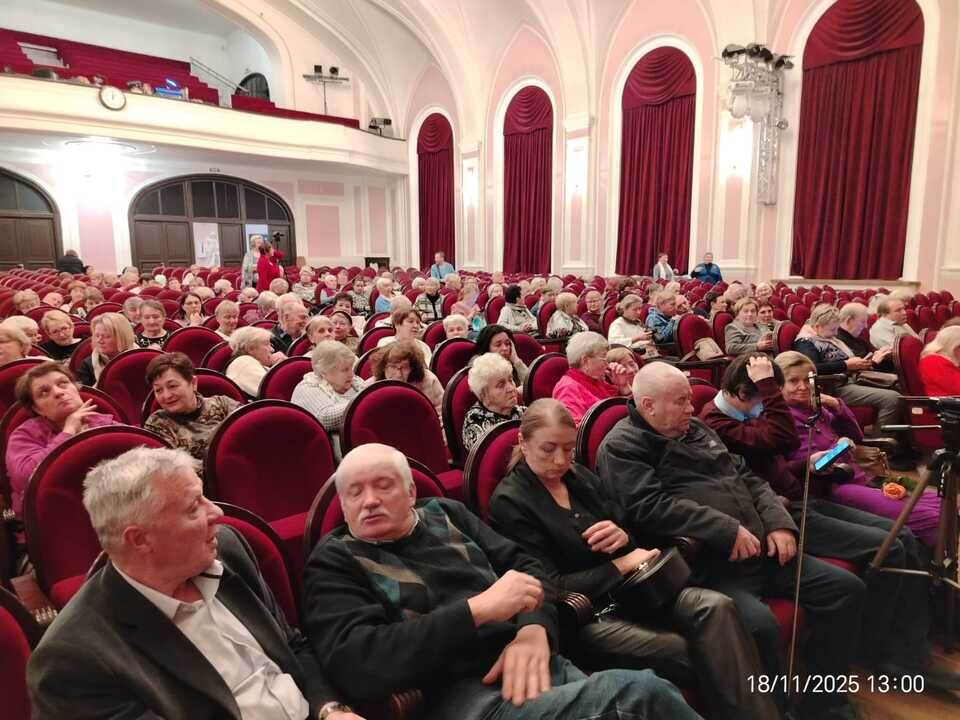 Дружный актив Фрунзенского районного отделения «Дети войны» г. Санкт-Петербурга на концерте гармониста Игоря Шипкова в ДК железнодорожников. Н.В. Артемьев,