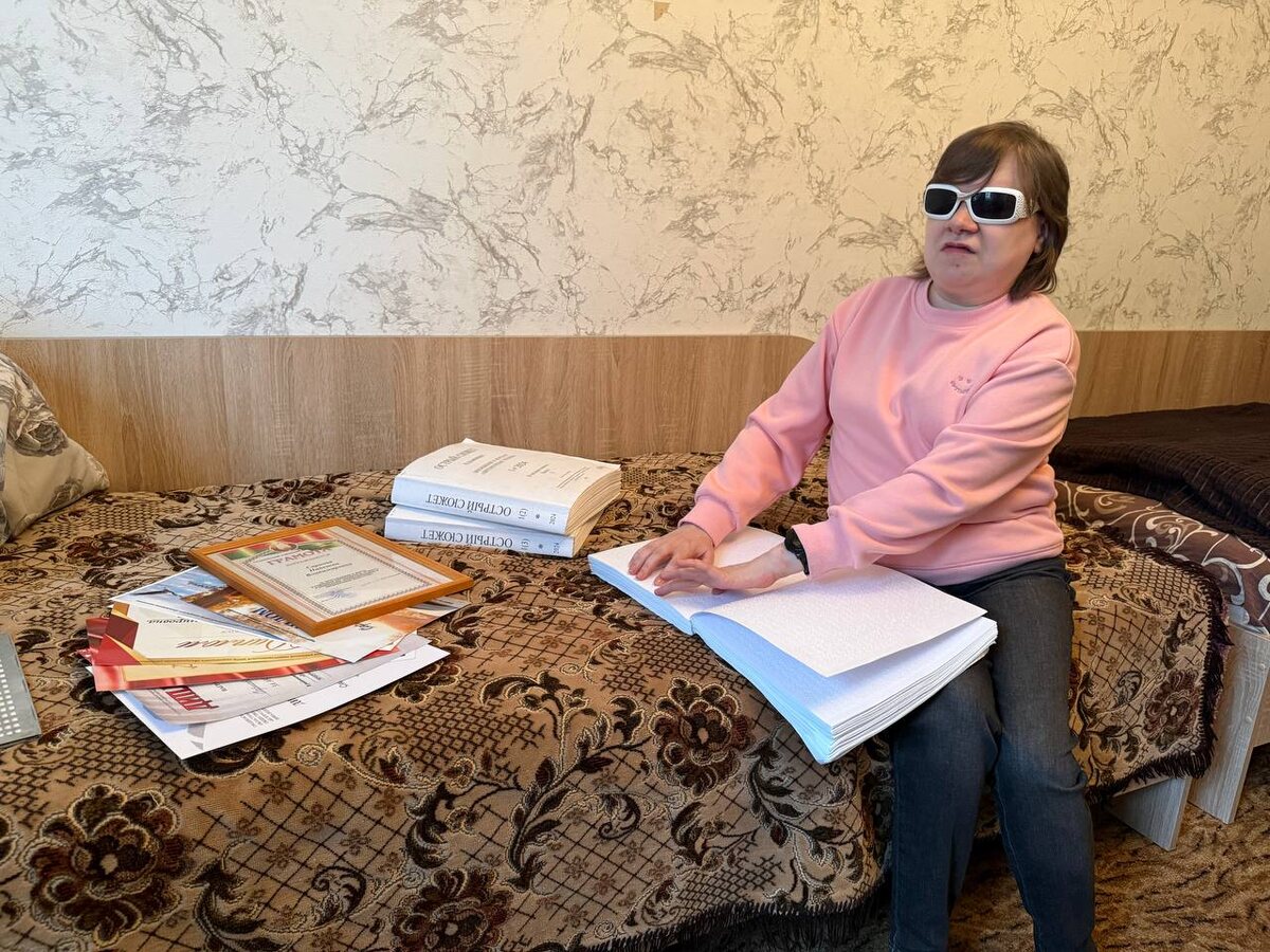 А та у Надежды непростая. Ведь она никогда не видела краски окружающего мира, поскольку родилась незрячей, является инвалидом I группы.