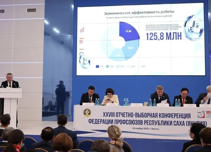 🏆 Николая Дегтярева вновь избрали лидером профсоюзов Якутии XXVIII отчетно-выборная конференция Федерации профсоюзов Якутии состоялась в Якутске 19 ноября. На ней подвели итоги деятельности организации за 2021–2025 годы и избрали новый состав руководящих органов. Председатель Федерации профсоюзов Николай Дегтярев представил делегатам подробный отчет о работе. Сегодня профобъединение объединяет 22 отраслевые организации. По состоянию на 1 января 2025 года численность членов профсоюзов в республике достигла 168 523 человек. Подробнее читайте по ссылке. 🖥 Фото: sakha.gov.ru yk24.ru в 📲 MAX | 💬 Telegram | 💙 ВК | 📺 VK Видео