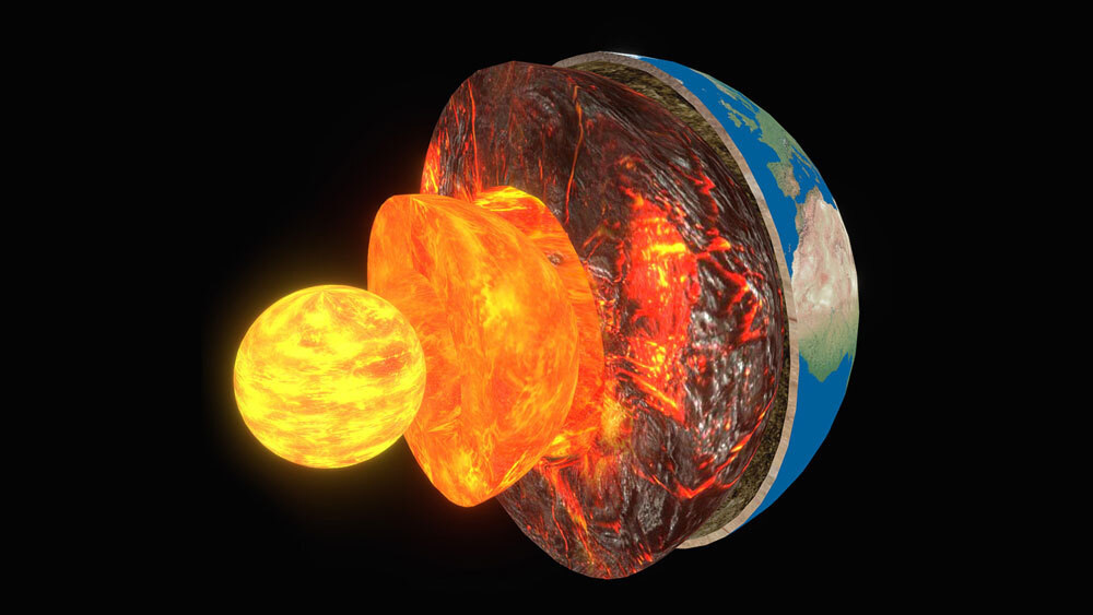 На протяжении десятилетий ученые ломали голову над двумя громадными загадочными структурами, скрытыми в глубинах Земли. Их масштабы и необычная природа бросают вызов традиционным моделям эволюции планеты. Новое объяснение этим аномалиям увидело свет в журнале Nature Geoscience. Более того, по словам одного из авторов, геодинамика Ёсинори Миядзаки из Ратгерского университета, оно может указывать на их роль в формировании способности Земли поддерживать жизнь. Необычные структуры в недрах Земли Крупные области с низкой скоростью сдвига (LLSVP) и зоны сверхнизких скоростей (ULVZ) расположены на границе между мантией Земли и ее ядром, на глубине почти 2900 километров. LLSVP — это массивные скопления плотной горячей породы размером с континент. Одна находится под Африкой, другая — под Тихим океаном. ULVZ — это тонкие, расплавленные участки, «прилипшие» к ядру, словно лужи лавы. Оба типа структур сильно замедляют сейсмические волны, что указывает на их необычный состав. «Это не случайные аном