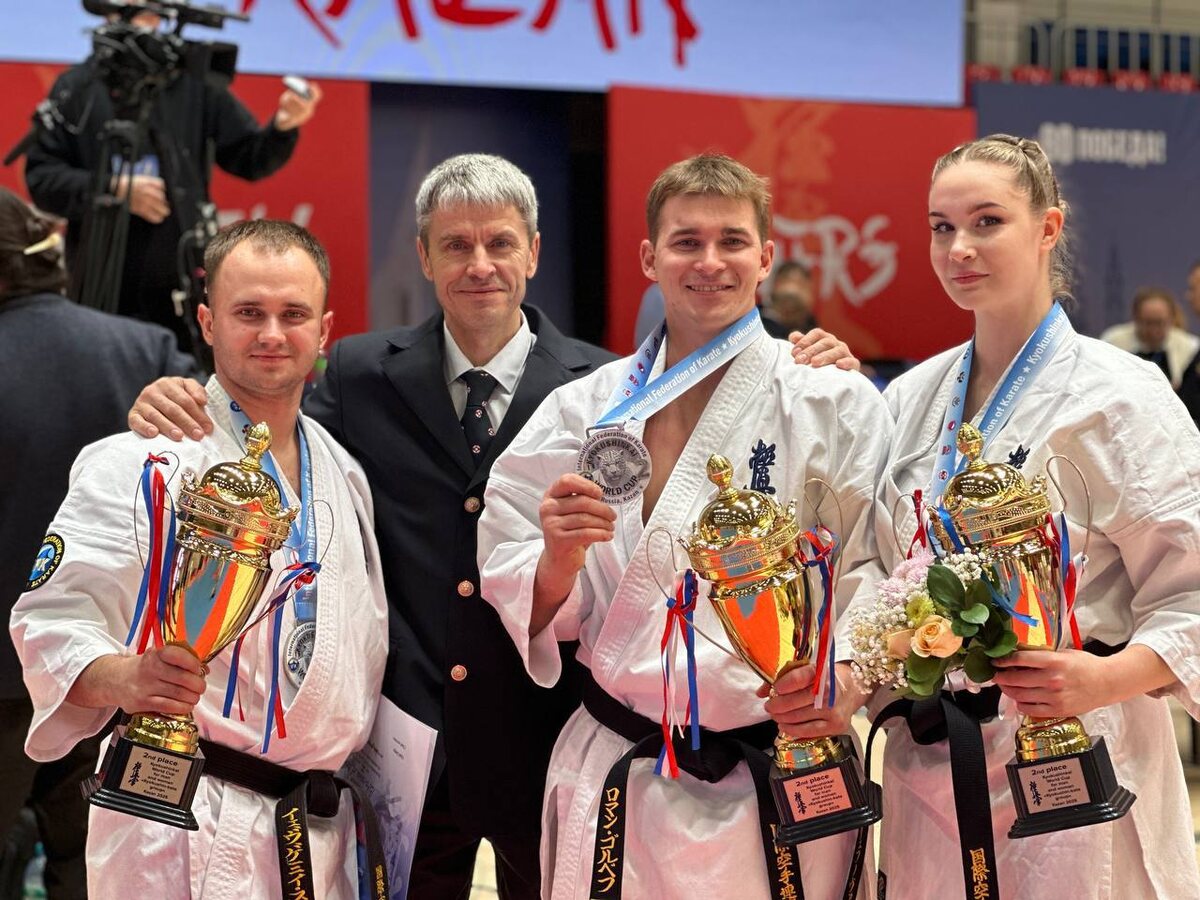 Серебро Кубка Мира – у минусинских каратистов! В Казани прошёл Кубок Мира по киокусинкай каратэ, объединивший более 400 лучших бойцов из 21 страны и 29 регионов России. Среди них ярко выступили наши спортсмены Алина Бревнова, Евгений Смольник и Роман Голубев, представлявшие сборную России на этом престижном турнире. Алина завоевала право участвовать в Кубке Мира благодаря победе на Чемпионате России. В Казани она показала впечатляющую технику, стойкость и целеустремлённость, за что была удостоена серебряной медали. Путь Евгения к Кубку Мира начался с победы на Чемпионате России, где он доказал своё превосходство. В Казани он вновь подтвердил высокий класс, проявив технику, стратегию и бойцовский дух. Итог — почётная серебряная медаль Кубка Мира! Роман заслужил право участвовать в Кубке Мира, одержав победу на Чемпионате России. На соревнованиях в Казани он продемонстрировал высочайший уровень мастерства, волю к победе и несгибаемый характер. В результате — заслуженная серебряная м