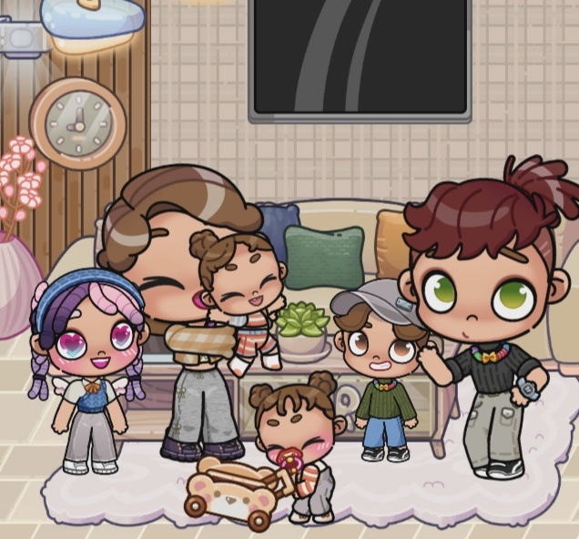 Арина- 14 лет. Матвей- 12 лет. Аня- 7 лет. Анфиса- 3 годика. Виктория (Мама)- 32 года. Дима (Папа)- 35 лет. ------------💞-----------💫-----------💞---------------- Вот такая семья!:3
