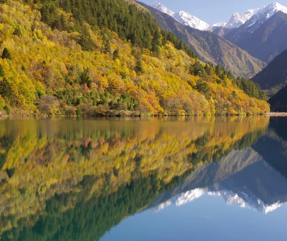 Национальный парк «Цзючжайгоу» Раскинулся на склонах горного хребта Миньшань и включает в себя три живописные долины. Название нацпарка переводится как «долина девяти деревень» — именно столько поселений находилось там в древности. Сейчас осталось только семь деревень, в которых живут около тысячи человек. На территории более 600 км² расположены великолепные и разнообразные ландшафты — можно увидеть первозданные леса, горные вершины, множество озёр и водопадов. Но больше всего «Цзючжайгоу» славится чистыми бирюзовыми озёрами разного размера. Всего на территории 114 водоёмов. Местная легенда гласит, что озёра — осколки зеркала. Его, по преданию, своей возлюбленной Воносэмо подарил бог Дагэ. Девушка нечаянно разбила зеркало, и рассыпавшиеся осколки превратились в чудесные водоёмы. Вода в них разных оттенков: голубая, тёмно‑серая, фиолетовая, коричневая. Палитра зависит от нескольких факторов: местной флоры, отражения света и содержание карбоната кальция в воде. Удивительно, но почти у