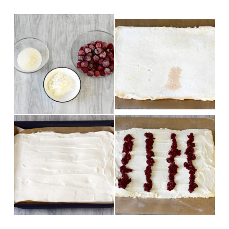 ● Вишня — главный герой начинки. Предпочтительнее использовать замороженную вишню без косточек, так как она сохраняет соки и аромат.