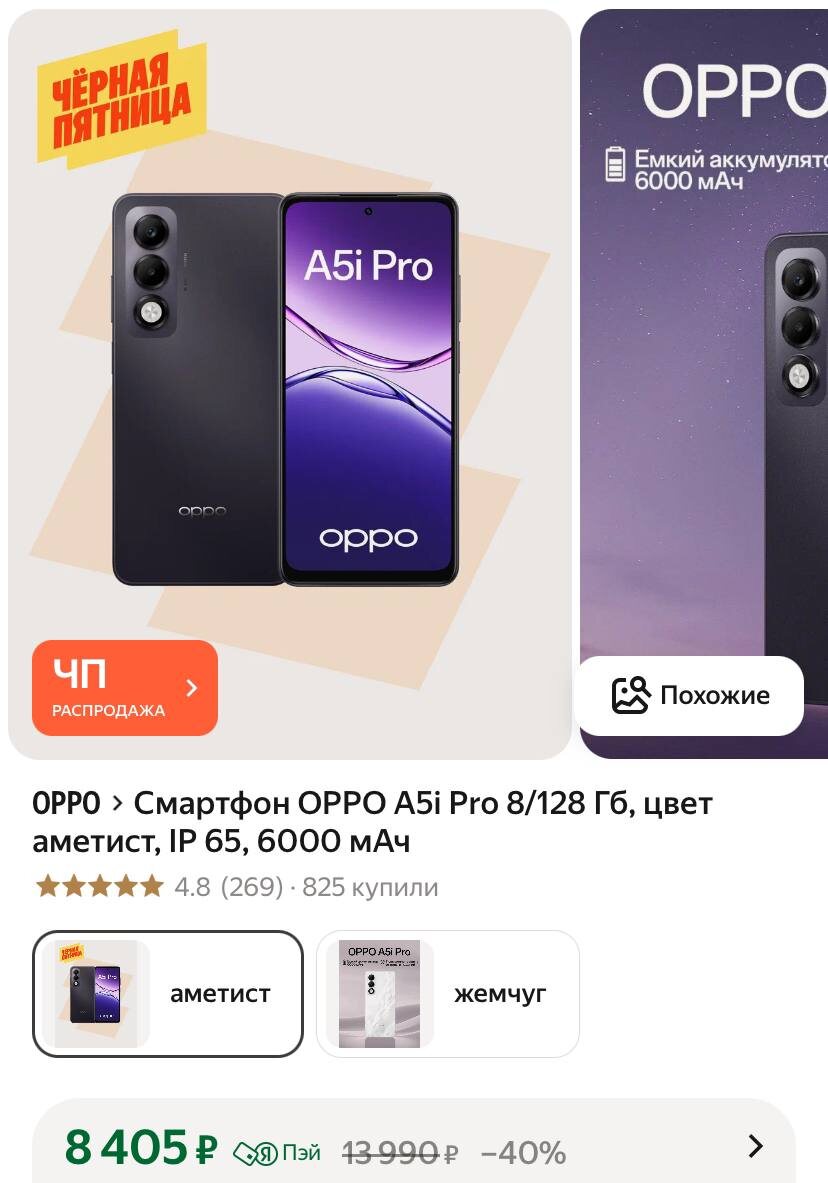 Смартфон OPPO A5i Pro 8/128 Гб, цвет аметист, IP 65, 6000 мАч https://market.yandex.ru/cc/846P6o ⭐️NORTME-41-AF - минус 2000₽ на один любой заказа от 8000₽ (для новых пользователей) ✅ Подписаться 🔣 Бот с промокодами