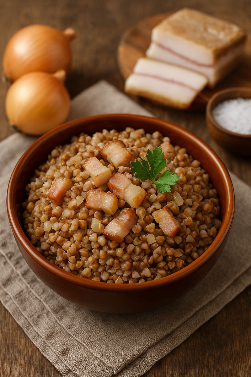 Гречка с салом и луком — это быстрое и сытное блюдо, идеально подходящее для рабочего дня, поездки, пикника или позднего ужина. Его любят за три качества: