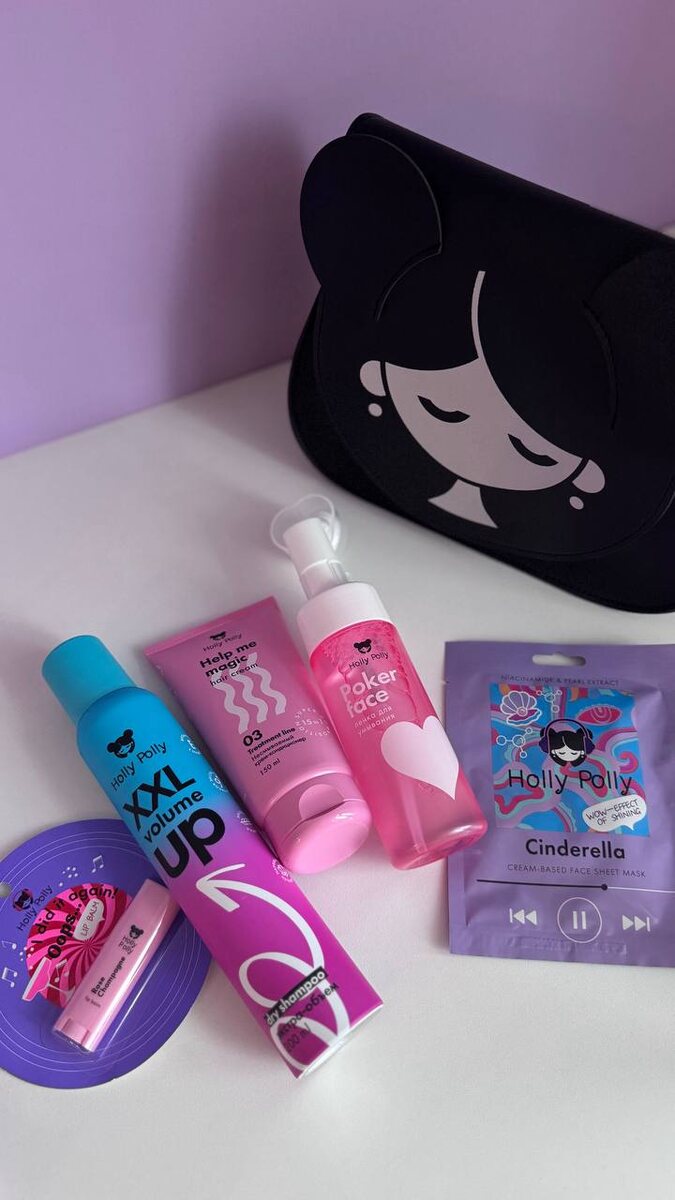 смотрим вместе на новинки от Holly Polly💗 мне кажется, или это правда один из самых милых бьюти брендов? внутри сумочки были👇 ⬆️сухой шампунь xxl volume up 🩷крем-кондиционер для волос help me magic ♥️пенка для умывания poker face 🥂бальзам для губ rose champagne 💜маска для лица cinderella а вы уже знакомы с holly polly? что пробовали от бренда?🍓
