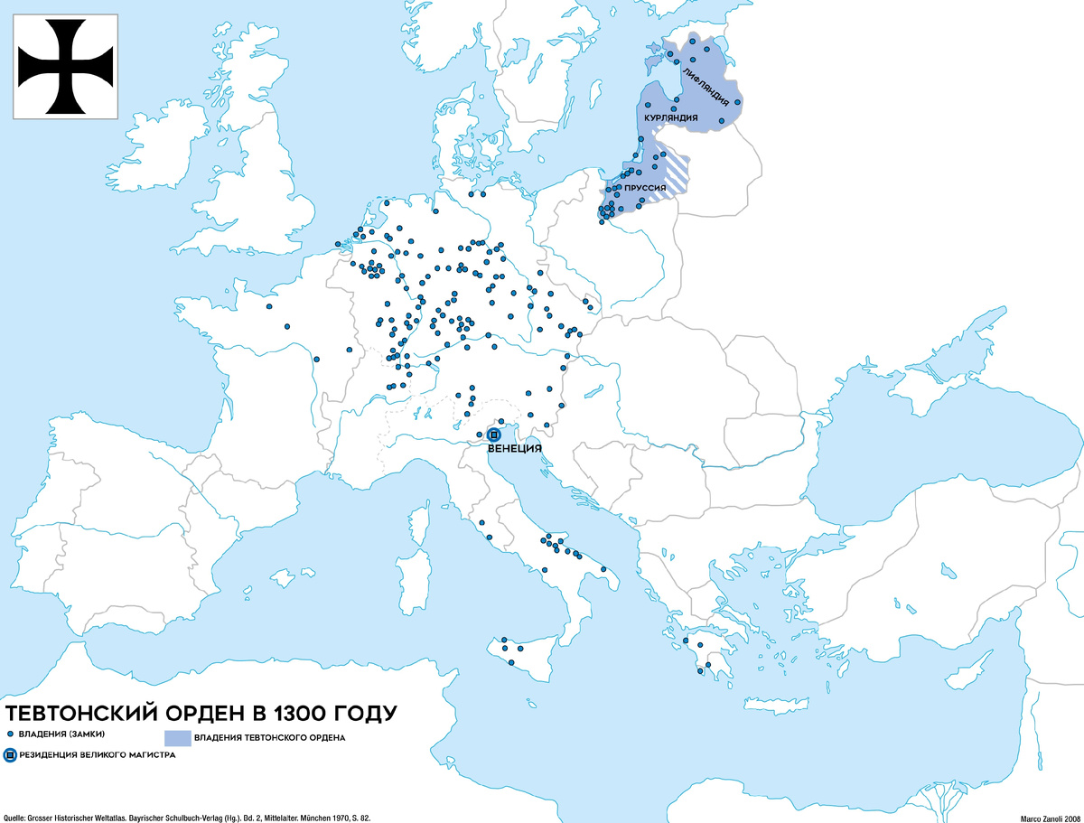 К 1300 году Тевтонский орден, первоначально основанный как братство для ухода за больными и раненными в Святой Земле, превратился в могущественную военно-религиозную организацию, управляющую территориями в Прибалтике. Его ядром была Пруссия, которую орден завоевал и колонизировал, создав на этих землях теократическое государство, не имевшее аналогов в Европе.