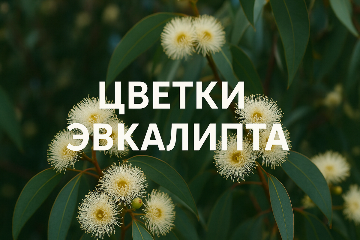 Цветки эвкалипта — это не яркие лепестки, как у розы. Они чаще выглядят как пушистые «много-тычинковые» шары, где главная красота — в структуре и аромате. Цветение приходит как внезапное напоминание: природа готова очистить и обновить.