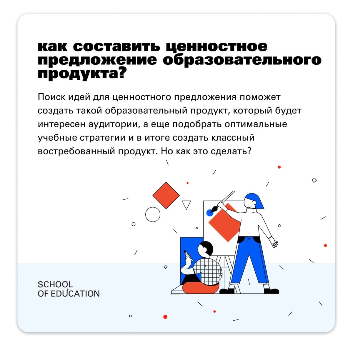 Как создать ценностное предложение образовательного продукта? Частая проблема при создании программы — понятно объяснить, зачем она человеку. Что он получит? Как изменится его опыт? Почему этот курс ему подойдет? ❗️Ответ на все эти вопросы кроется в ценностном предложении. Мы собрали короткий маршрут, как его составить, в карточках — где мы разбираем, как понять своего будущего студента, увидеть его задачи, трудности и ожидания, а затем связать это с логикой продукта. Подробнее о миссии и стратегическом планировании образовательных программ говорим на «Управлении и лидерстве в образовании». ⏩Подробнее