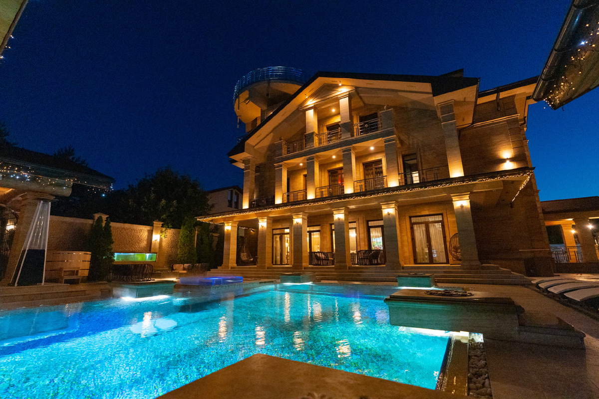 Здесь — полноценный клуб: Можно снимать клипы, вечеринки, сторилайны — и никто не будет жаловаться на шум. В доме 13 дизайнерских спален, банкетные зоны, СПА, зоны отдыха.
