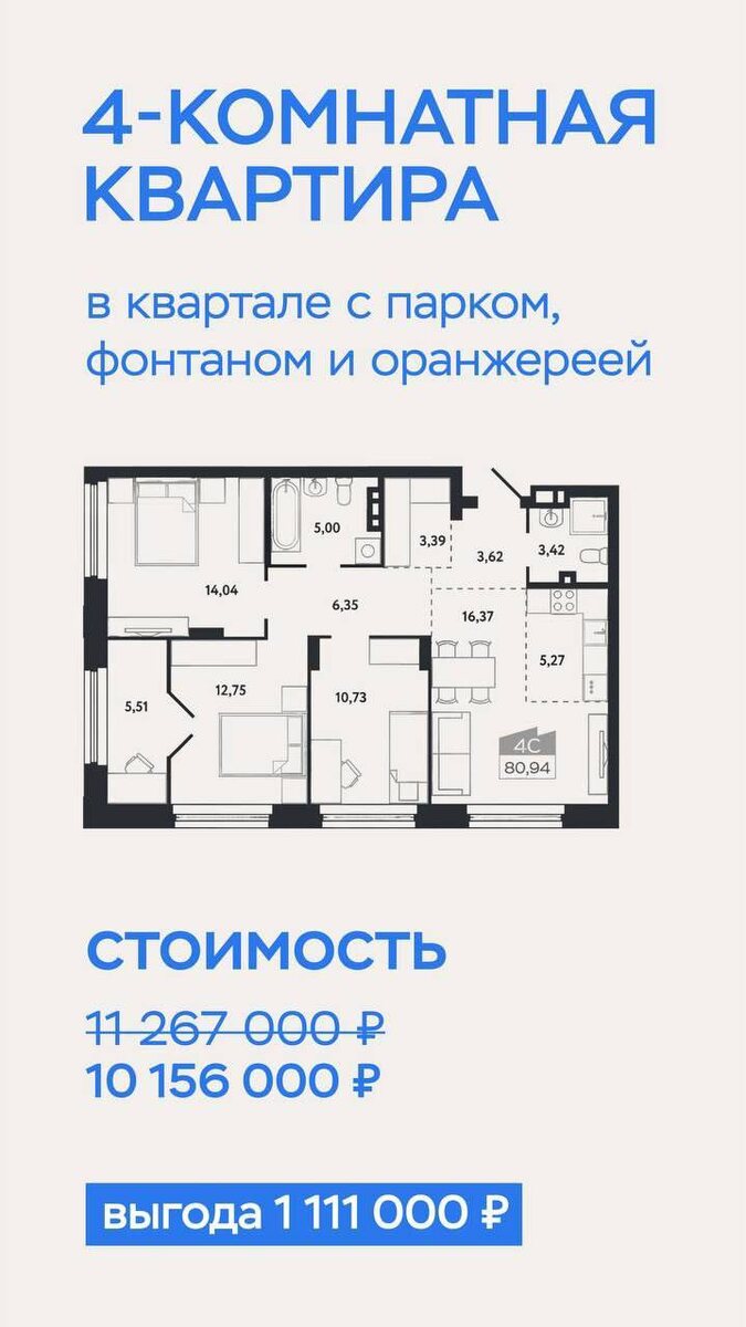 Большая квартира в 10 минутах от центра города со скидкой 1111 000р.🔥 - к концу 2027 года застройщик построит свой сад и школу - огромный двор парк по размеру с центральный парк . Стоимость 4к студии 10156 000 р. Первый взнос 4156 000 р. Семейная ипотека 6% Платеж 35 тыс Или айти ипотека🔥 Также возможно зашить ремонт в ипотеку🔥 Ставь «+», если интересен вариант👇
