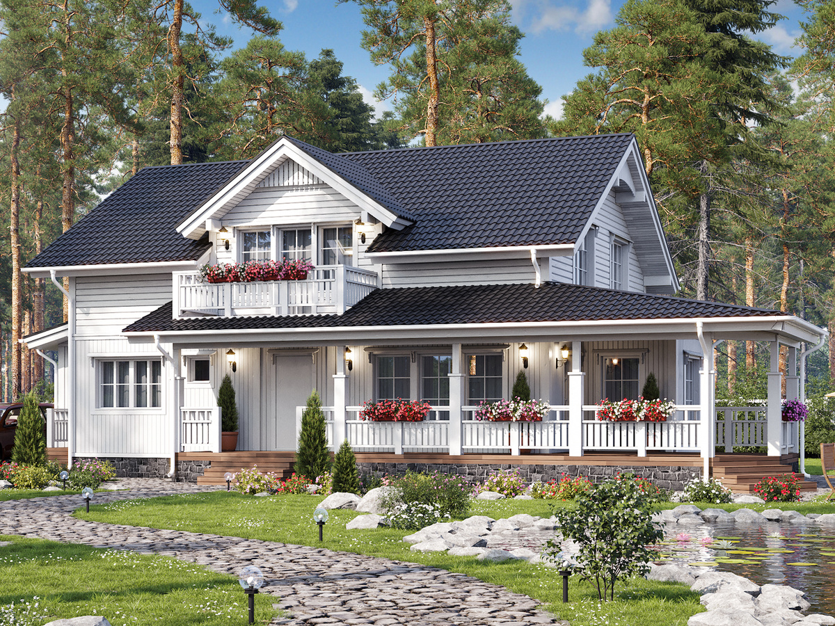 Наверное, каждый видел проекты, где при внушительной площади пространство распланировано без логики. Наш Сканди 279 не из их числа. Он не только просторный, но и удобный. А это крайне важно, когда вы выбираете дом для постоянного проживания. Год от года Сканди 279 входит в десятку самых популярных проектов. Интерес к нему легко объясним. Дом сразу привлекает внимание своей архитектурой с чертами скандинавского и американского стилей. Он идеально подходит для большой семьи, которая стремится к высокому уровню загородного комфорта. В числе особенностей проекта: Жилая площадь 234 м2; Четыре спальни. В том числе, гостевая; Просторная и светлая кухня-гостиная с камином; Холл на втором этаже, где можно обустроить кабинет; Вместительный гардероб; Сауна, чтобы жизнь за городом была еще приятнее; Два санузла; Прачечная и техпомещение; Терраса г-образной формы, которую удобно зонировать. Проект Сканди 279 легко адаптируется под индивидуальные запросы заказчиков без ущерба архитектуре. Больше и