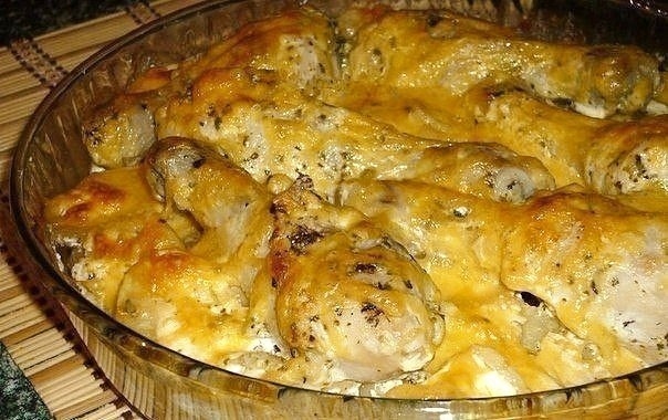Куриные ножки солим, перчим, посыпаем сухими травами. Добавляем чеснок, пропущенный через пресс, и сметану. Перемешиваем и оставляем минут на 30. Очищенный картофель нарезаем достаточно тонкими кружочками, солим, перчим, выкладываем в жаропрочную форму. На картофель выкладываем куриные голени вместе с маринадом. Закрываем форму фольгой и отправляем в разогретую духовку при температуре 180-200 градусов на 45 минут. Затем достаём форму из духовки, снимаем фольгу, посыпаем натёртым сыром и отправляем в духовку ещё минут на 20. Картошка с куриными ножками, приготовленная в духовке, получается очень вкусной, нежной и ароматной! Всем мира, добра, красоты!