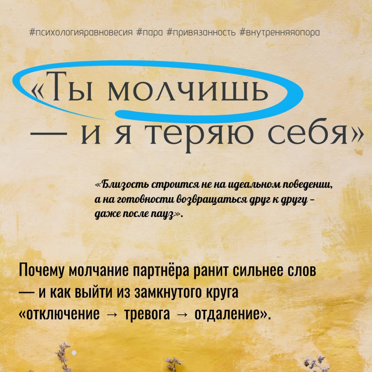 🤓😐🧞 🫤😀🥶: «Ты молчишь — а я теряю себя». Как не разрушить близость молчанием❓ 📎Вы замечали, что в паре иногда молчание становится громче крика? Партнёр не ссорится, не уходит — просто «выключается». И в этой тишине вы чувствуете: «Я один. Меня для него/неё нет».🔄 Это не драматизм. Это — реакция на нарушение эмоциональной связи, заложенной ещё в детстве. В эксперименте «Неподвижное лицо» младенцы при отсутствии реакции со стороны матери буквально теряли координацию поведения: сначала пытались восстановить контакт, а потом замирали. То же самое происходит и во взрослых отношениях. Когда один из партнёров становится эмоционально недоступным (из-за стресса, страха уязвимости, привычки «отключаться»), второй автоматически активирует тревогу привязанности:🔄 «Если меня не видят — я не важен. Если я не важен — меня могут оставить». Это запускает цикл: — один замыкается → — второй тревожится и требует внимания → — первый отдаляется ещё сильнее 💎Что можно сделать здесь и сейчас: Не