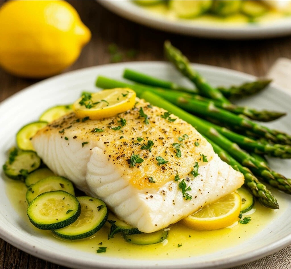 ТРЕСКА, ЗАПЕЧЕННАЯ С ЦУКИНИ И ЛИМОННЫМ СОУСОМ Мяу, мои пушистые гурманы! 😺 А это блюдо доказывает, что правильное питание может быть изысканным! Нежнейшая треска с овощами-гриль и ярким лимонным соусом — это ресторанный уровень, который легко повторить дома. Идеально для особенного ужина! 🐟🍋 ТРЕСКА, ЗАПЕЧЕННАЯ С ЦУКИНИ И ЛИМОННЫМ СОУСОМ ИНГРЕДИЕНТЫ: 🧾 · Филе трески — 2 шт. (по 150 г) · Цукини — 1 шт. (200 г) · Спаржа — 100 г · Лимон — ½ шт. · Оливковое масло — 2 ст.л. · Каперсы — 1 ч.л. · Укроп — 2 веточки · Соль, перец ВРЕМЯ ПРИГОТОВЛЕНИЯ: ⏰ 25 минут СЛОЖНОСТЬ:🐾 Нужна сноровка ПОШАГОВЫЙ РЕЦЕПТ: 👩🍳 1. Духовку разогрейте до 200°C. Противень застелите пергаментом. 2. Рыбу посолите, поперчите, сбрызните 1 ст.л. масла и соком половины лимона. 3. Цукини нарежьте кружочками, спаржу очистите от жестких концов. Выложите овощи на противень, сбрызните маслом. 4. Запекайте 12-15 минут до готовности рыбы. 5. Для соуса смешайте оставшееся масло, сок второй половинки лимона, мелко рубл