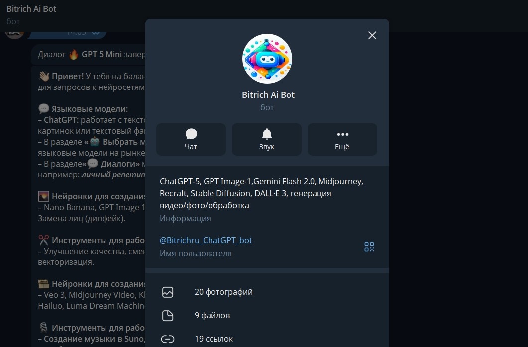 @Bitrichru_ChatGPT_bot - нейросеть для создания текстов, картинок, видео и еще много чего в Телеграм
