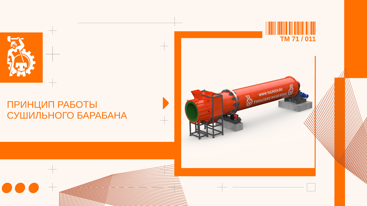 Сушильный барабан (или барабанная сушилка) — это цилиндрический ротационный аппарат, внутри которого влажный материал подвергается термической обработке для удаления влаги. Он состоит из длинного металлического цилиндра, установленного под небольшим углом к горизонту и вращающегося вокруг своей оси. Внутри барабана расположены специальные подъёмные лопатки (или «волновики»), которые поднимают и пересыпают материал, обеспечивая равномерный контакт с горячим газом.
