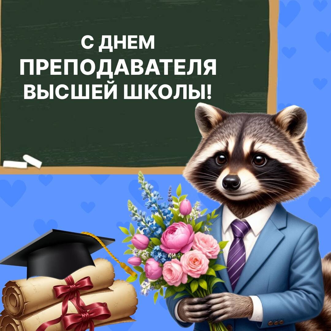 💐 С Днём преподавателя высшей школы! Сегодня мы от всей души поздравляем тех, кто ежедневно вкладывает свою душу и сердце в будущее нашей страны — преподавателей вузов, академий и университетов. 👨🏫 Вы не просто ведете занятия — вы помогаете молодым людям найти своё призвание, поверить в себя и раскрыть потенциал. Благодаря вашему профессионализму, терпению и неравнодушию выпускники получают не только диплом, но и прочный фундамент для успешной профессиональной карьеры. Пусть ваши занятия всегда будут увлекательными, исследования — прорывными, а студенты — благодарными и успешными. 🫶 Спасибо за ваш неоценимый вклад в образование, науку и будущее наших студентов!