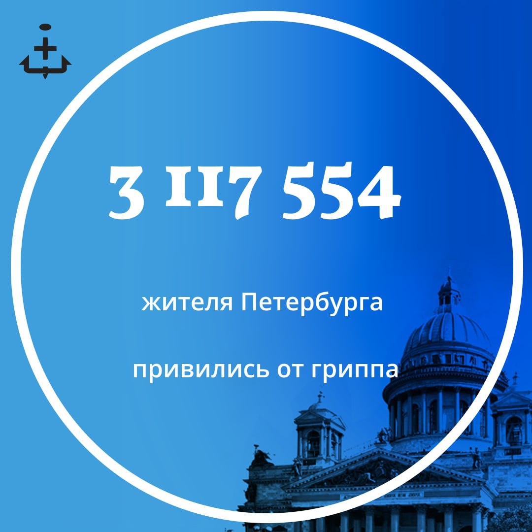 В Петербурге против гриппа привились 55,7% жителей. Это 3 117 554 человека, в том числе 568 367 детей. «Сделайте прививку от гриппа сейчас, так как данный период времени является наиболее благоприятным для своевременной выработки защитных антител и формирования стойкого иммунитета к вирусу гриппа», — призвали петербуржцев сотрудники Роспотребнадзора. Подпишись на Город+