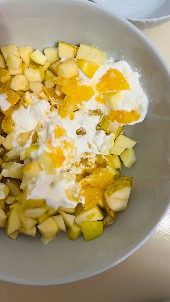 Что приготовить вместе с детьми? Фруктовый салат 🍏 Детям можно дать порезать фрукты. Банан и почищенные дольки апельсина могут резать даже малыши пластиковым ножом🔪 Ингредиенты: Банан Яблоко Груша Апельсин Любые другие фрукты Йогурт Приготовление: Фрукты чистим, режем, заливаем йогуртом, перемешиваем. Ваши дети любят участвовать в приготовлении еды? #десерт
