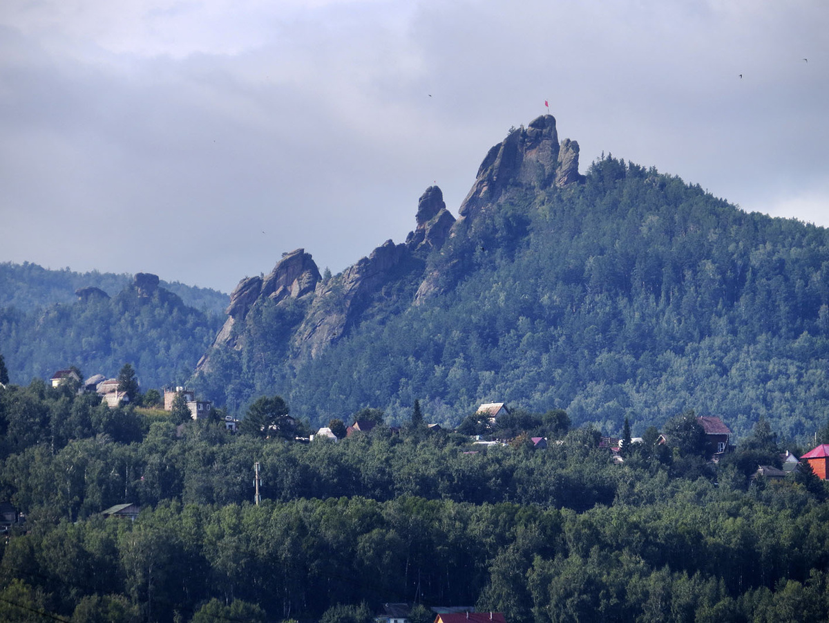Высшая точка Торгашинского хребта - вулканическая Чёрная сопка (683м), или просто Каратаг, отлично видимая из города. Но главное - относительно пологий у Торгаша именно "городской" склон, на котором в ХХ веке к станице присоседились рабочие слободки и дачи. В Базаиху же Торгаш обрывается круто, а потому он и Столбы были из разных маршрутов... вплоть до 2020-х годов.
