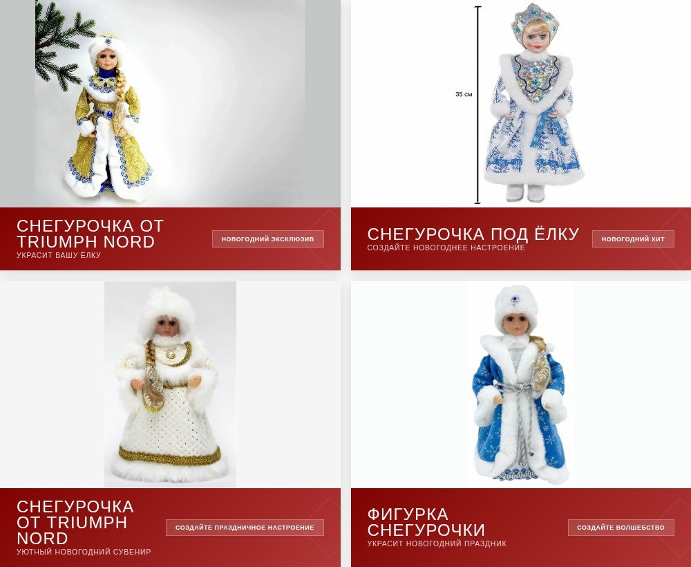 Новогоднее настроение уже в пути! 😍 Подбери очаровательных Снегурочек под ёлку — они создадут волшебное настроение! 😍 Игрушка под ёлку, Снегурочка, длина 35 см: ya.cc/848fV7 Фигура под ёлку Снегурочка в синей с золотом шубе, 40 см, Triumph Nord: ya.cc/848fUe Triumph Nord Снегурочка в белой с золотом шубе и шапке 84663, 30 см: ya.cc/848fVY Фигурка Triumph Nord Снегурочка в шубе и шапке 85828, 40 см: ya.cc/848fVx Фигурка Triumph Nord Снегурочка в шубе и шапке 85827, 30 см: ya.cc/848fWV Зимнее волшебство Снегурочка под ёлку «Зимнее волшебство. В красной шубке с сердечком» двигается, 30 см: ya.cc/848fWr Реклама. Информация о рекламодателе по ссылке.