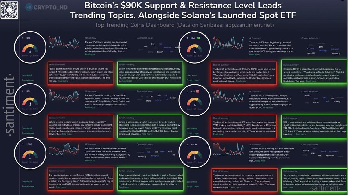 🔝 #BTC, #SOL, #USDT, #LINK, #XRP и #1INCH сейчас в топе обсуждений в социальных сетях – Santiment