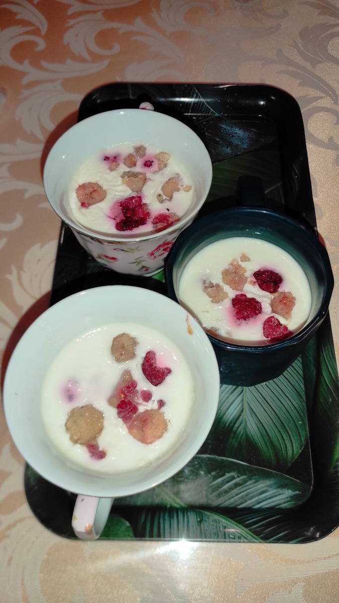 Здравствуйте, мои хорошие 🤗 С наступлением холодов хочется что-то готовить дома и уютно с чашечкой чая или кофе это дегустирувать☕ Провела тут эксперимент кулинарный🤩 Купила пакетик "Panna Cotta". По рецепту молоко 300 мл подогреть, при закипании добавить сливки 200 гр. 20%, помешивая довести до кипения. Вмешать смесь из пакета, перемешивать. Снять с огня. Разлить по формочкам. Охладить 5 часов в холодильнике. Я сначала на балкон, потом в холодильник. Добавила чуть ягод с морозилки. Вкусный, нежный, сливочный десерт. До скорых встреч 🤗