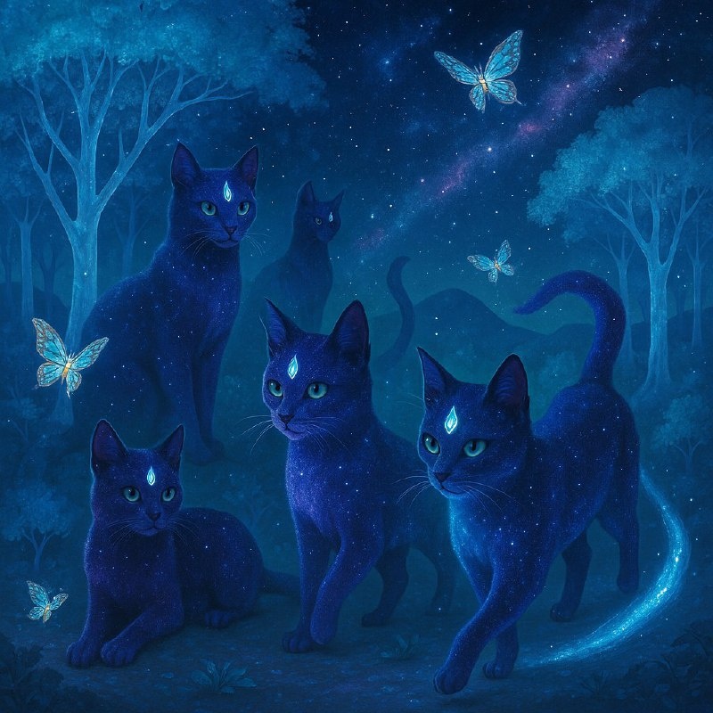Фантастические коты в загадочном космическом лесу? 🐾✨ Как вам такое путешествие в мир, где магия и технология сливаются воедино