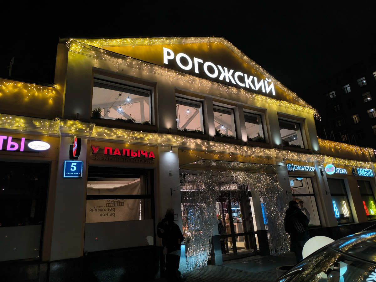 Вечером после работы зашли на Рогожский рынок за гостинцами и заодно поужинать. Рынок находится совсем недалеко от метро "Площадь Ильича", улица Рогожский Вал, д.5. Сюда можно прогуляться по этой улице от Покровского монастыря. Минут 20 идти. На рынке мы уже бывали. И тоже вечером зимой. То есть пока не получилось ознакомиться с гастроконцепциями дворика Рогожского рынка, которые тоже имеются в некотором количестве. То есть второй раз мы пришли сюда в дедлайне. И в подробностях рынок не рассматривали, стараясь решить свои задачи. В Таганском районе этот рынок -- единственный. И близость к центру Москвы даёт о себе знать более высокими ценами, чем на окраинах города. Я уже не говорю о рынке в Люберцах, где вкусные помидоры продавали совсем ещё недавно по 150 рублей. В прошедшем времени о Люберецком рынке потому, что торговые палатки постепенно сносят и к началу декабря закончится аренда у всех арендаторов рынка. Тогда будут снесены последние палатки. Городу нужны эти площади для реконст