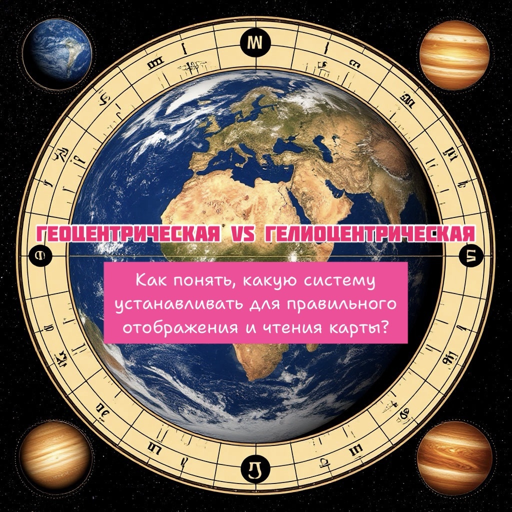 Какую использовать для правильного отображения и чтения карты? В астрологии используется геоцентрическая система — давайте разберём, почему не гелиоцентрическая, как у астрономов⤵️ Гелиоцентрическая система (от слова Гелиос = Солнце) предполагает, что все планеты вращаются вокруг Солнца. Она важна для астрономов, изучающих физическую картину космоса: движение небесных тел, их орбиты, гравитационные взаимодействия. То есть по гелиоцентрической системе всё крутится вокруг Солнца ☀️. Но мы же живём не на Солнце и нам нужно использовать ту систему, которая будет влиять на нас, на людей на Земле. А значит, крутиться всё должно вокруг нас = вокруг Земли. И именно геоцентрическая система (от слова гео = Земля) отображает, как небесные объекты располагаются относительно Земли. В ней Земля принимается за неподвижный центр, а все остальные тела — за движущиеся вокруг неё. 👉Ещё раз, почему система гео, а не гелио: - мы живём на Земле и анализируем мир с позиции землянина; - мы изучаем то, ч